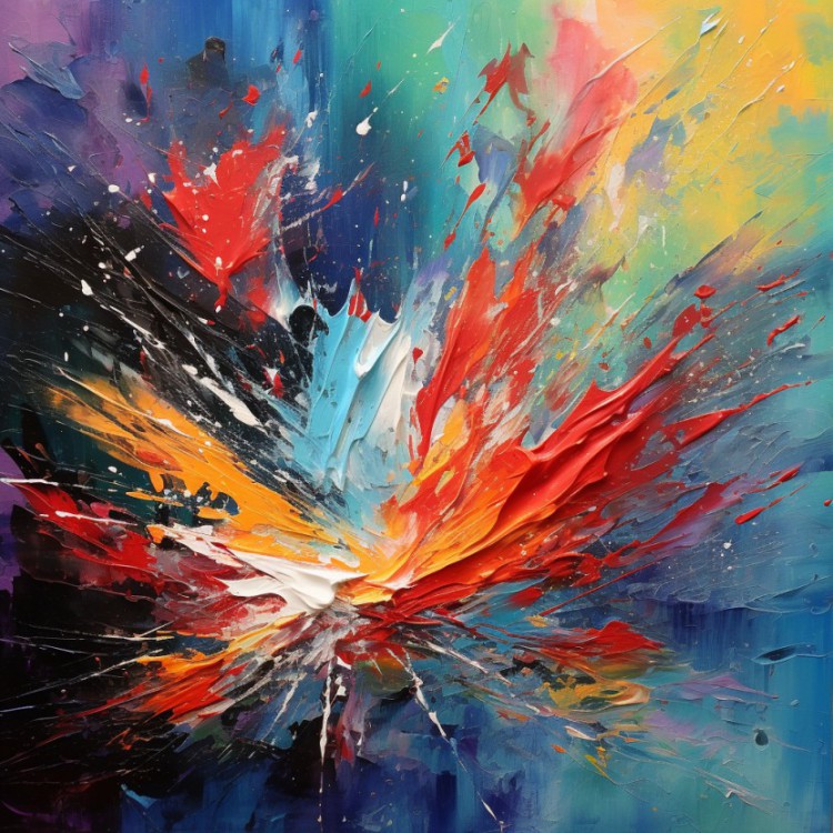 Fragmenten van Verlangen' is een abstract schilderij dat de complexiteit van menselijke verlangens en dromen verkent.