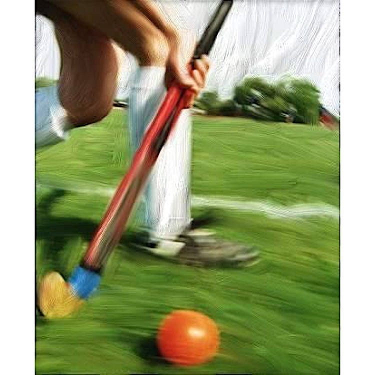Pop art schilderij hockeystick met bal is dik geschilderd met olieverf op schilders katoen/canvas - Diy hockey schilderij is opgespannen op een museum kwaliteit spieraam - Wij leveren ieder gewenst formaat omdat uw schilderij in opdracht voor u geschilderd wordt!