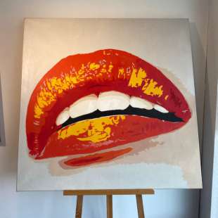 Fel gekleurd olieverfschilderij waarin roze lippen zijn afgebeeld.